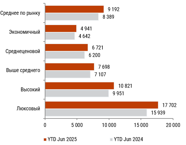 По итогам первого полугодия 2025 г. Средняя цена на номер выросла на 10,1%, а Доходность – на 9,6%